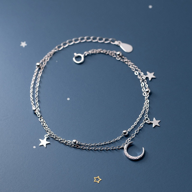צמיד ירח וכובים עדין שיוסיף לך נגיעה של קסם ללוק.