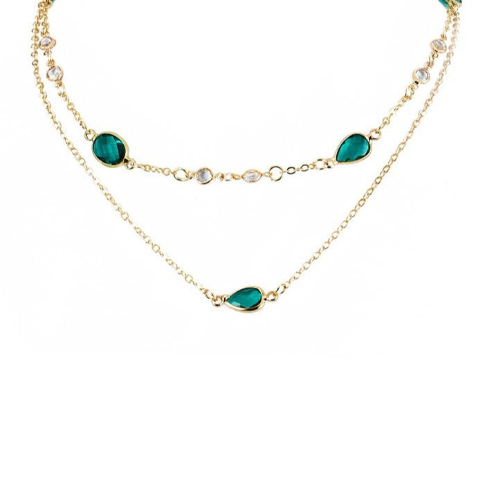 שרשרת זהב יוקרתית בעלת אבני חן ירוקות מלאות בסטייל.